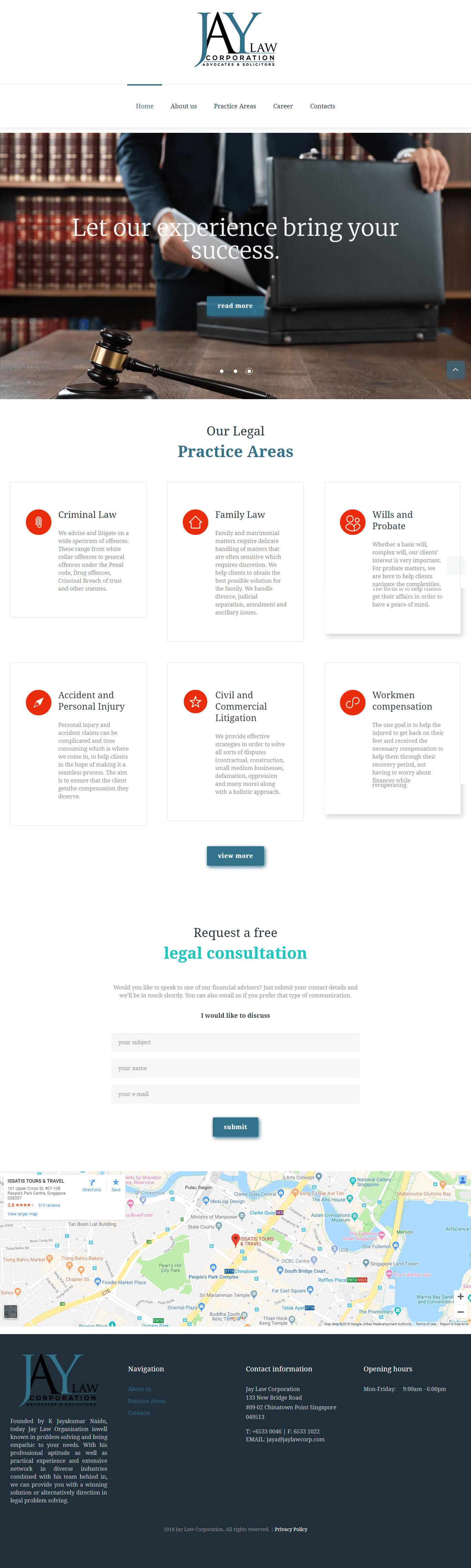 Since this is a law firm, the focus of the website is on their services. The design is straightforward, and it facilitates any inquiry on what the site visitor may need. There is a clear description of each practice area, and the firm’s capabilities and portfolio are clearly displayed.