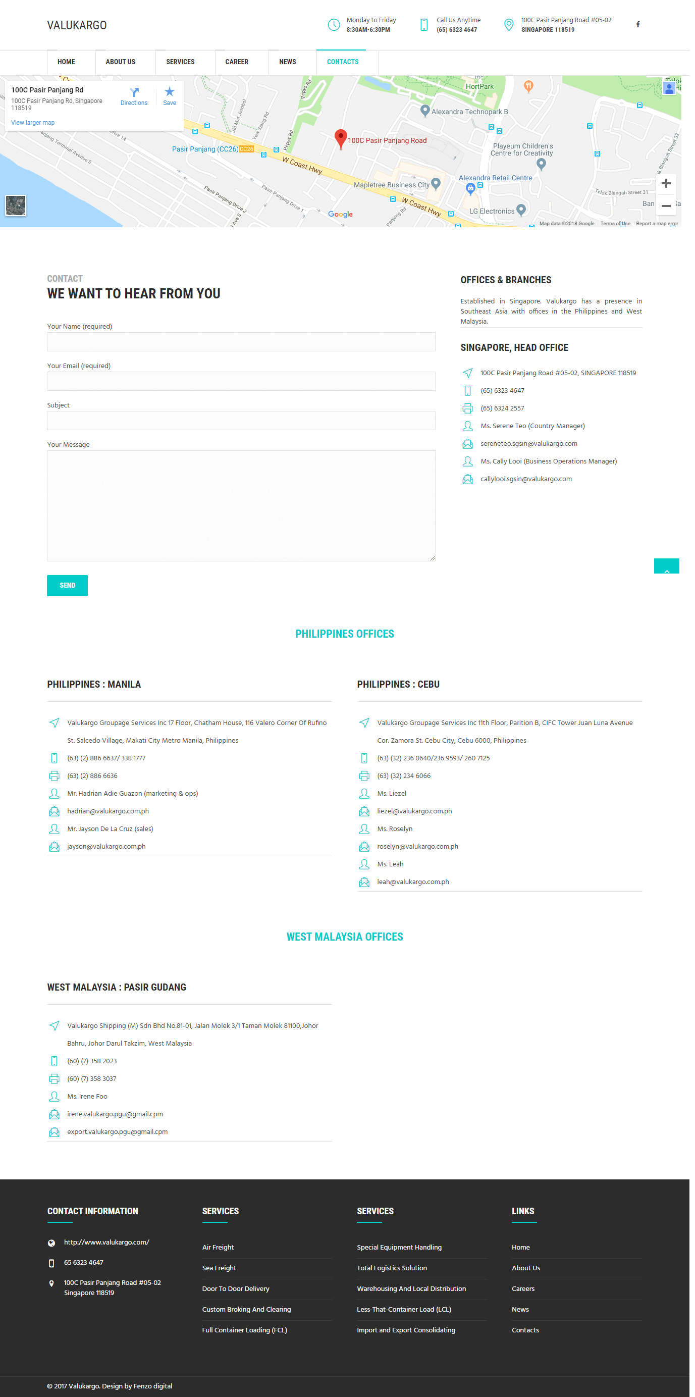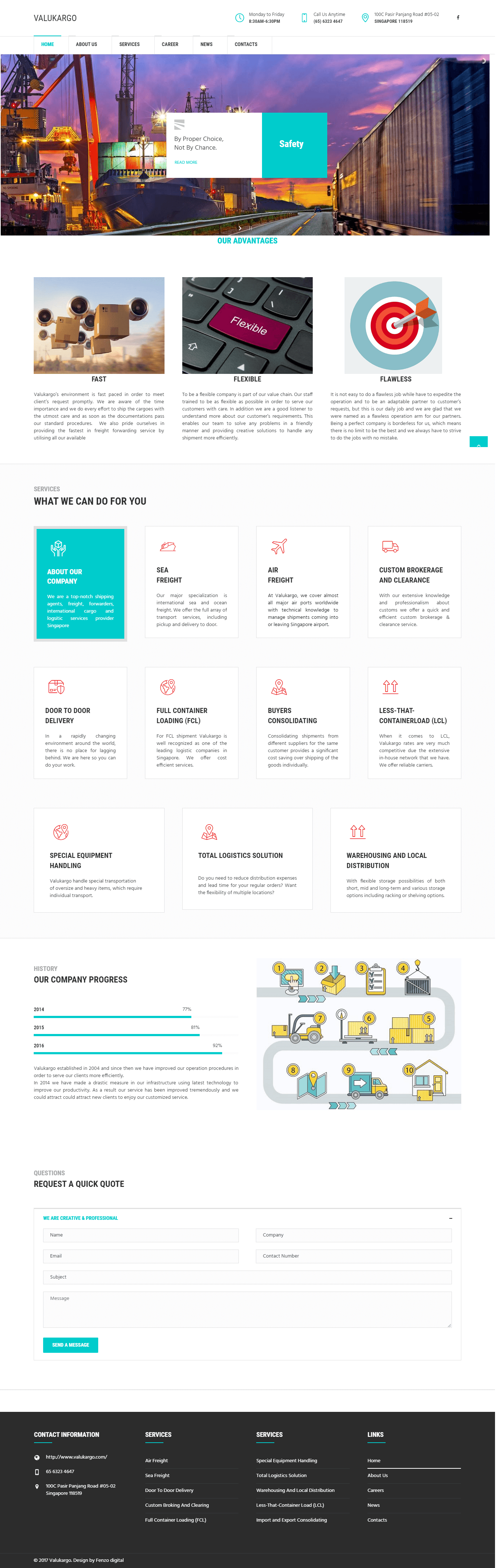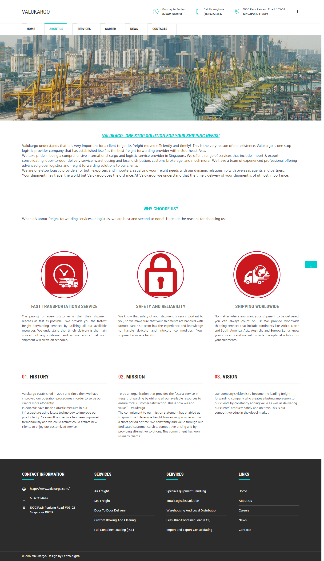 The website extensively features all the services that they offer, and a comprehensive explanation so you would know exactly what you need to avail. The call to action is fixed in the backdrop of the website, so no matter what point you decide, whether you are checking their services or trying to know more about the company, you can conveniently contact Valukargo.